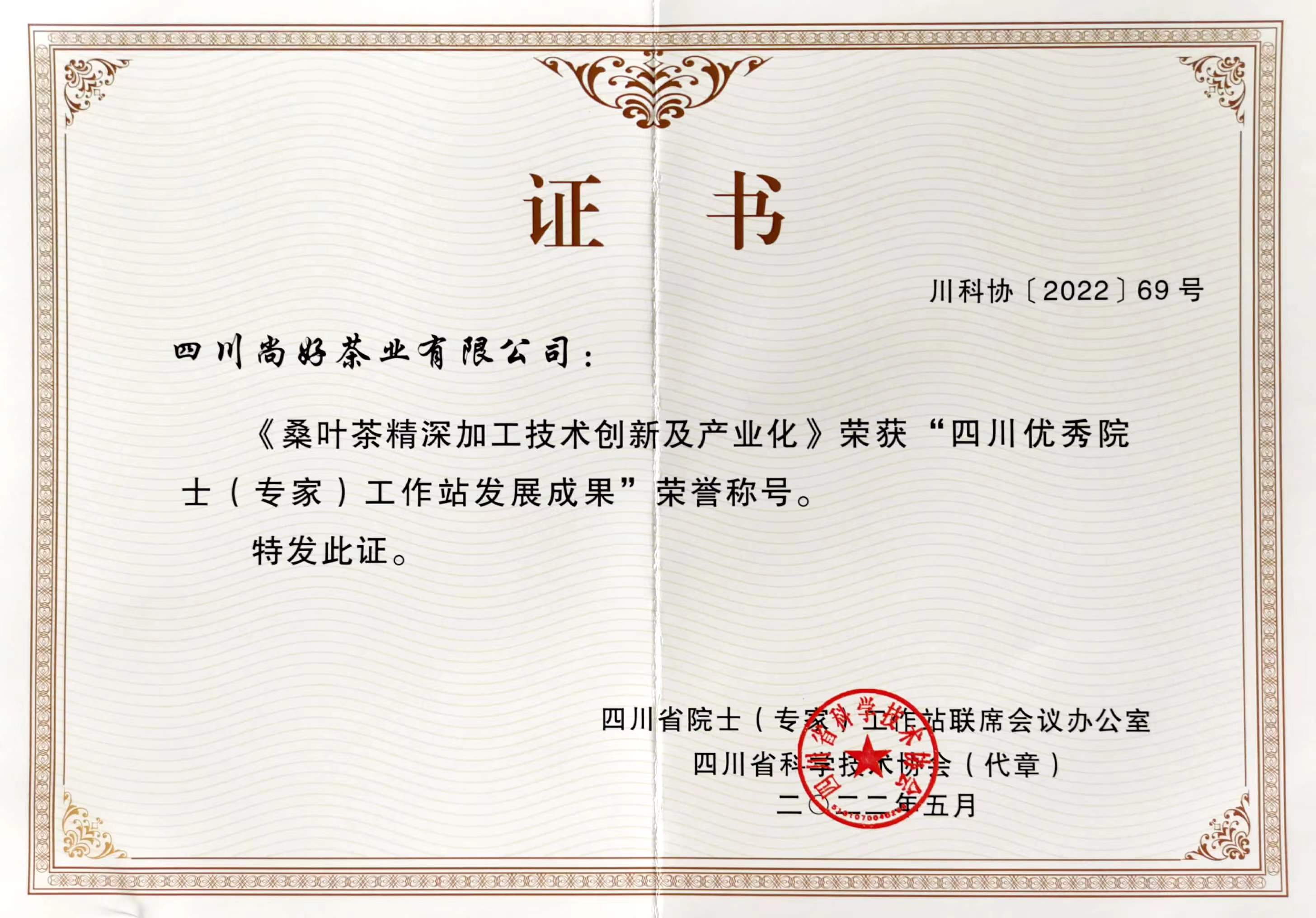 2019年(nián)3月(yuè),尚好(hǎ↑γ±o)茶業(yè)獲得(de)四川省科(kē)學技(δ£jì)術(shù)進步獎二等獎
