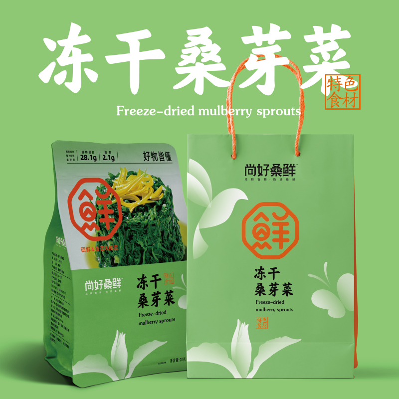 凍幹桑芽菜12.9元/袋包裝外(wài)尺寸:暫無規格:20g零售價:12.9元/袋 -